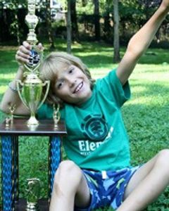 Sasha (pictured left) had a 1st place finish last summer, and yes, he won that huge trophy, too!